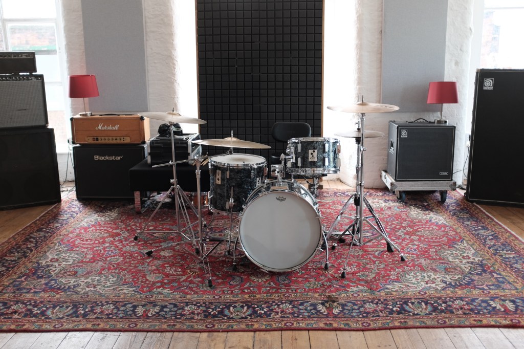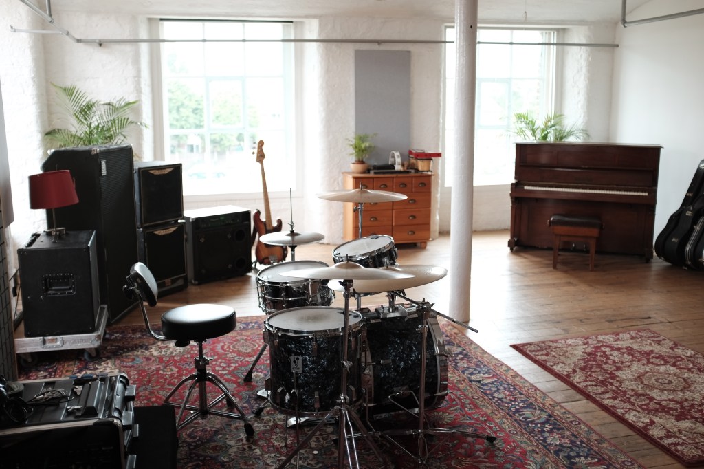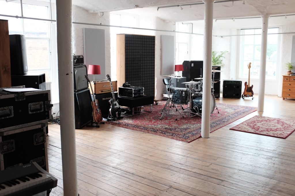 Our live space is a large 800 sq foot room consisting of brick walls, large glass windows and a wooden floor. It is a beautiful space for recording and rehearsing with lots of natural daylight. The original brick walls make this a great, open and reflective space however all reflections can be controlled by the use of studio baffles and acoustic screens to give a much tighter, dryer and isolated sound if required.